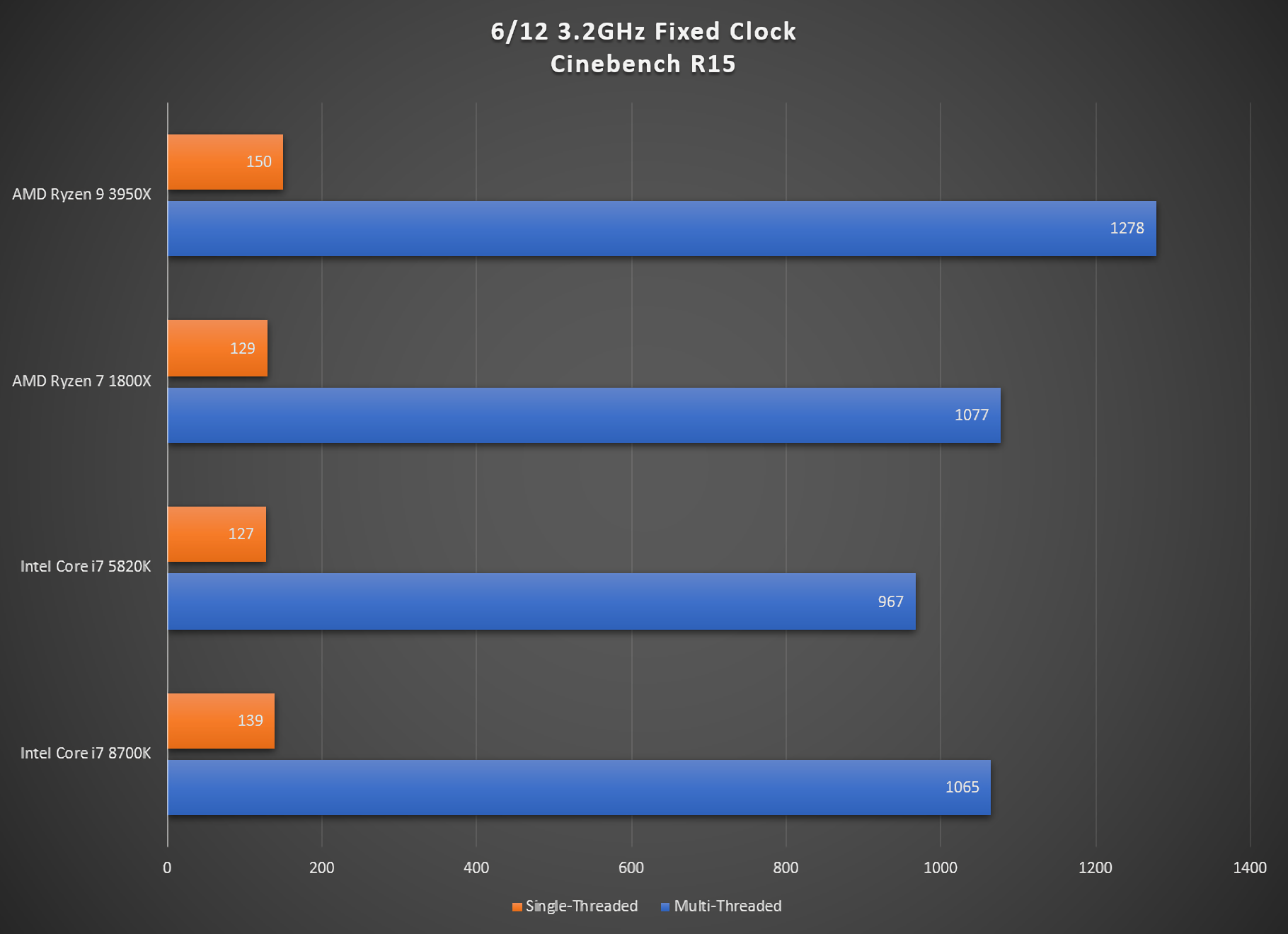 The older CPU results are all historical data from previous reviews/data. 5820K, 8700K and I think the 1800X are all running 4 sticks of 2800 dual rank RAM for 32gb total. The 9900K I believe is running 4 sticks of 3466 single rank RAM for 32gb total. The 3950X is running 4 sticks of tuned (but not crazy optimal b-die look at me i’m a cool dude settings) 3600 single rank RAM for 32gb total. I was planning on testing the 3950X at the same memory as the rest of the CPUs but yeah, time and effort and changing things out and ugh, you realize that is a lot of work on top of all the work that was already done right?